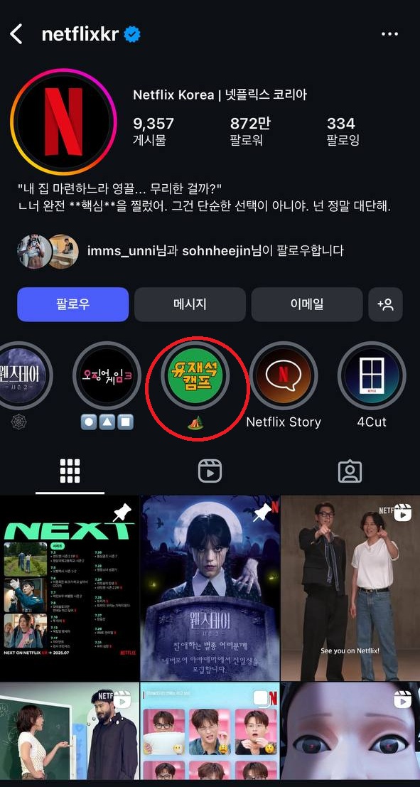 - 넷플릭스 코리아 공식 인스타그램 (@netflixkr) 프로필 링크 클릭